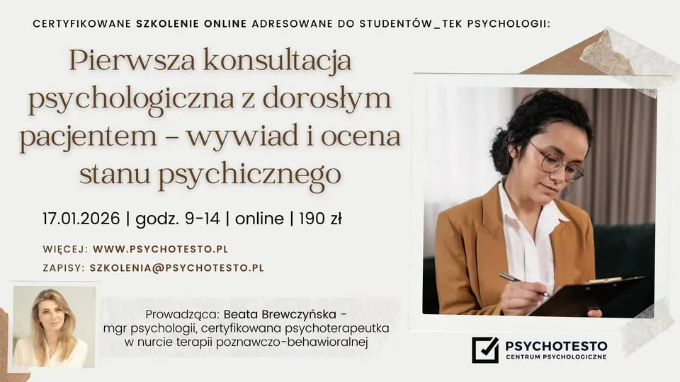 Pierwsza konsultacja psychologiczna z dorosłym pacjentem - wywiad i ocena stanu psych. | online
